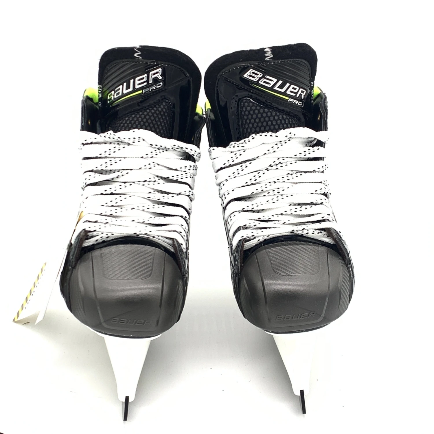 New Bauer Pro Goalie skates from an NCAA team. Size 10.5 Fit 3 with size 11 Vertexx Edge holders and LS5G steel. This pair of skates appear to be retail but are sourced from a pro teams locker room.