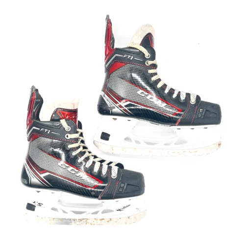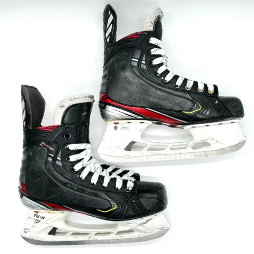 These skates are in good condition with general wear. There are only cosmetic issues with these skates as there are some cuts on the boot, toe box, and holders but these skates are in really good condition. These skates are equipped with size 4 Vertexx holders and LS5G Carbon blades.Â