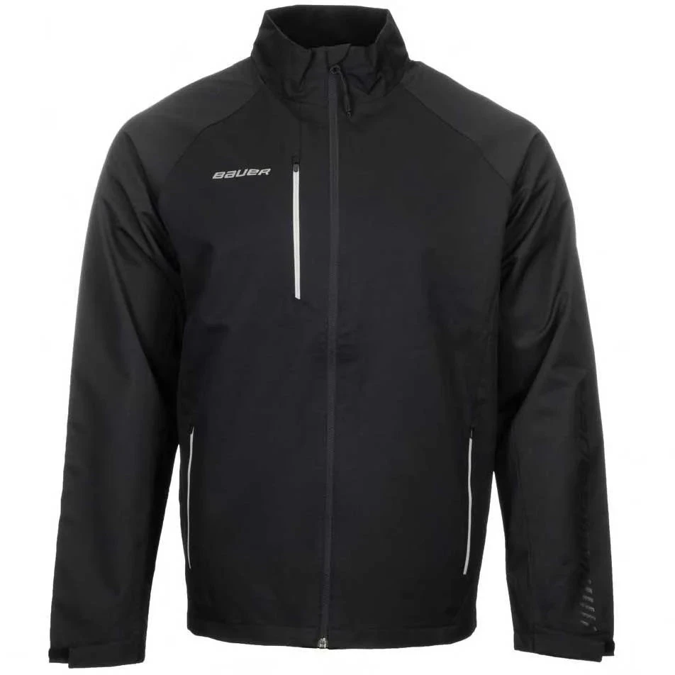 - BAUER screenprinted logo on left sleeve, right chest, and back neck