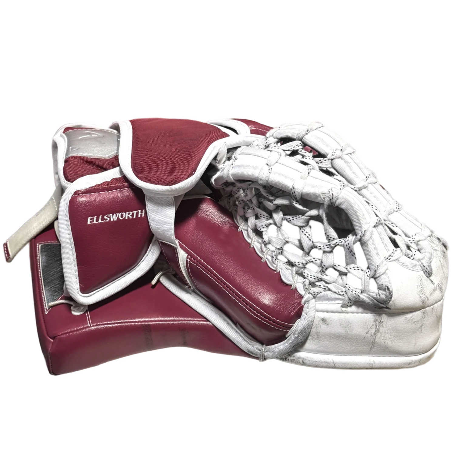 Bauer Supreme Shadow – Used Pro Stock Goalie Glove (White/Maroon/Black)