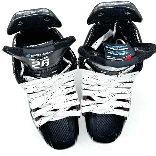 Bauer Supreme Ultrasonic pro stock hockey skates from NHL player Nick Abruzzese. Size 7D on the right and 6.75D on the left with 263 Power Fly holders and Fly-TI steel. Tongues feature the number 26 and the name “Abruzzese.”