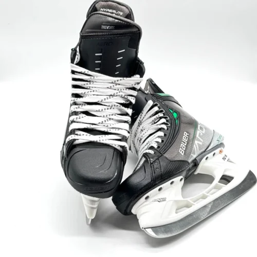 New Bauer Vapor Hyperlite skates from a pro team. Size 5.5D with 246 Tuuk holders and LS Pulse TI steel. These skates come with the name “Thevors” printed on the tongues. These skates feature a green colorway.Â
