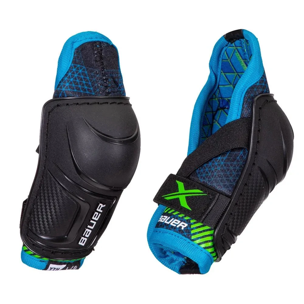 The Bauer X youth elbow pads feature an anatomical cap with detailed texture and MD foam. With the Y strapping design you can be sure to get a snug and mobile fit.