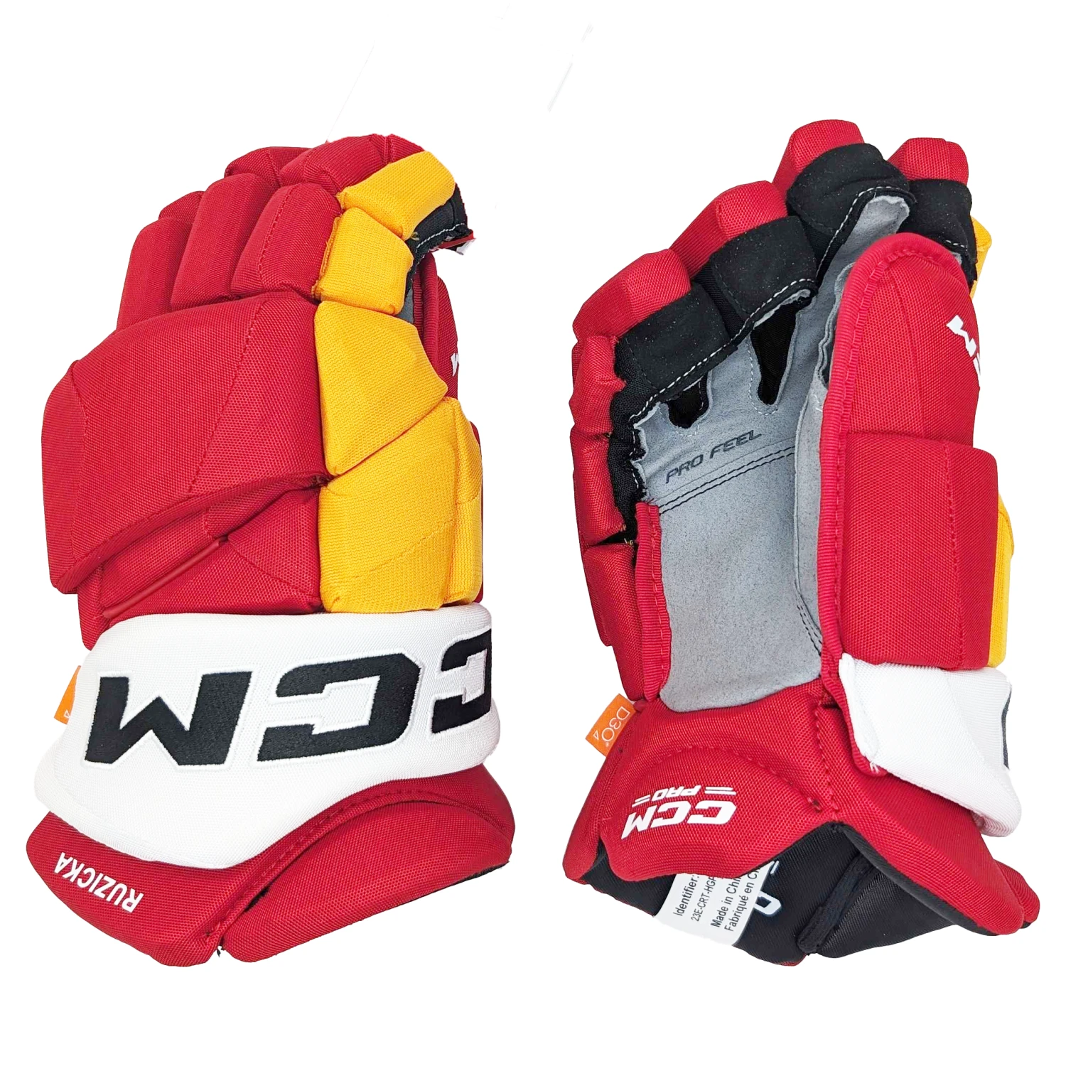CCM HGJSPP – NHL Pro Stock Glove – Adam Ruzicka (Red/Yellow/White)