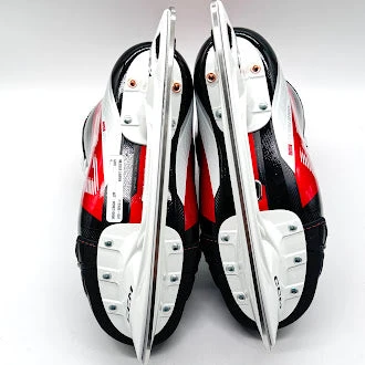CCM Jetspeed FT4 Pro hockey skates from an NCAA team. Size 4D with 238 XS CCM holders and black Step steel. Â