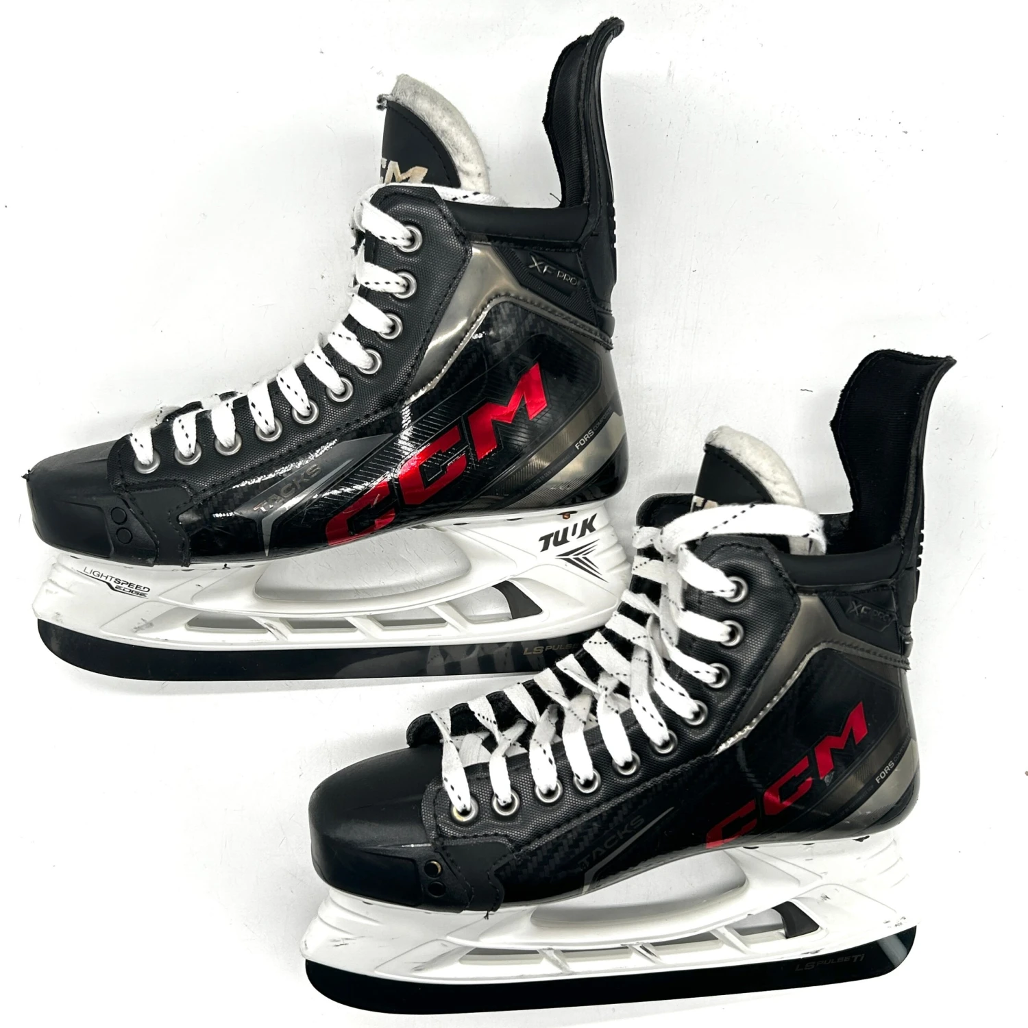 These skates are in very good used condition with general wear. These skates are sized 7 with 272 Lightspeed Edge holders and used Pulse Ti steel. Â These skates also have the red XF Pro graphic.