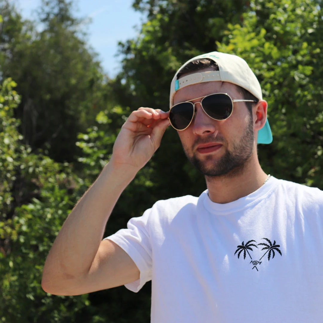 After several design rounds, we landed on this fun, easygoing graphic to give you something different from your typical team tee — something that hits just right for beach days, beer league, and cottage hangs.