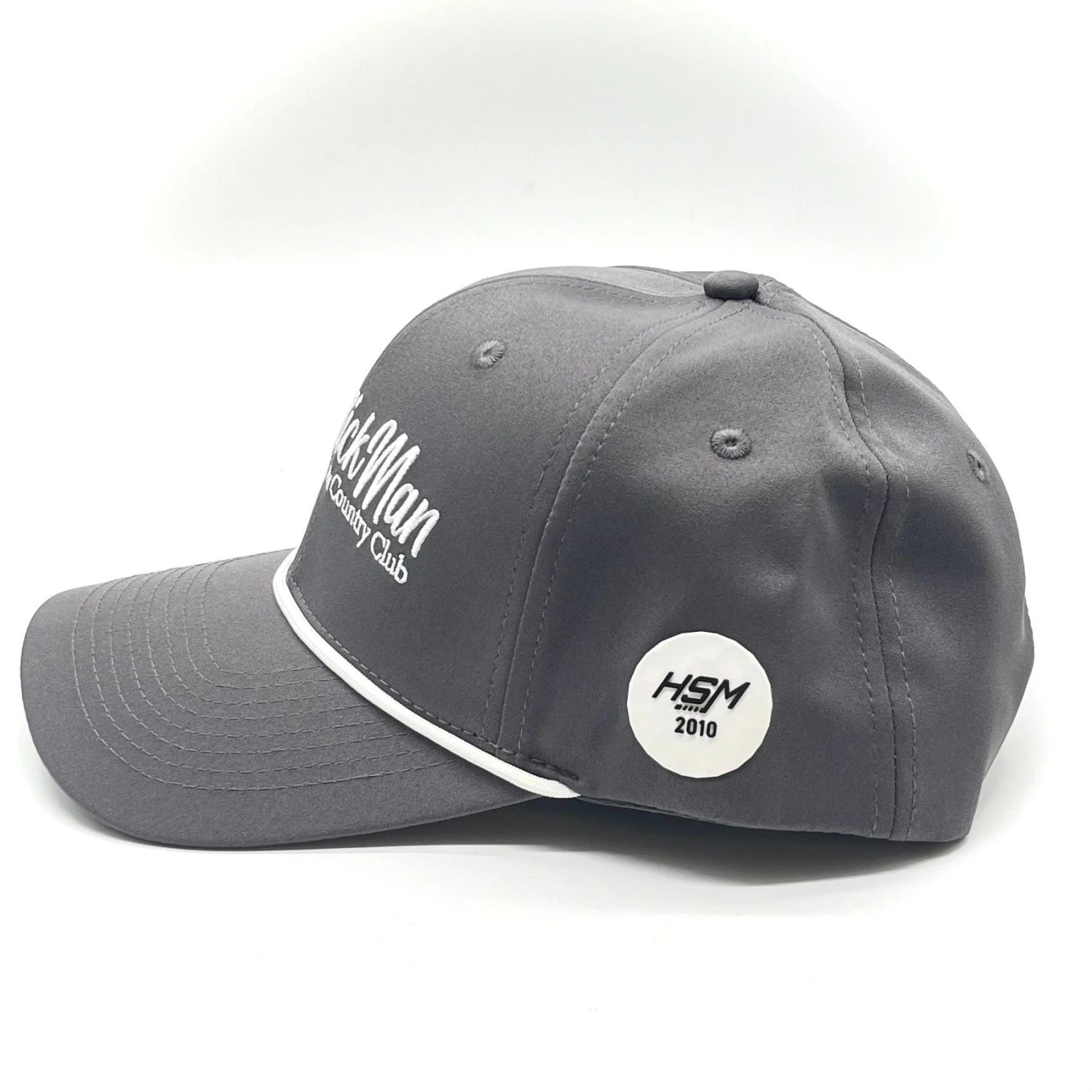 Introducing the HSM Golf and Country Club Hat, a best-selling hat silhouette by Team LTD, now featuring the brand new modern HSM Golf and Country Club logo on the front and side of the hat. This hat combines style and comfort with its curved brim and one material design. We understand the importance of a well-fitting hat, which is why the Golf and Country Club Hat sits comfortably on the head, striking the perfect balance between depth and shallowness.