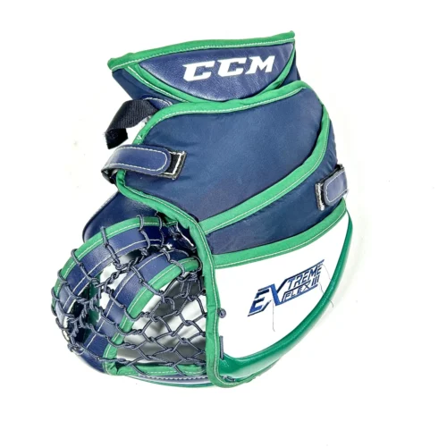 CCM Extreme Flex 5 – Used Pro Stock Full Right Goalie Glove (White/Red/Yellow)