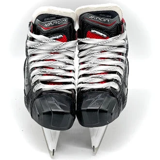 These skates are in great used condition. These skates come to us directly from a pro locker room. These skates are size 3.5D with LS3G stainless steel and size 3 Bauer Vertexx holders. These skates show very minor signs of use and have lots of life left in them.Â