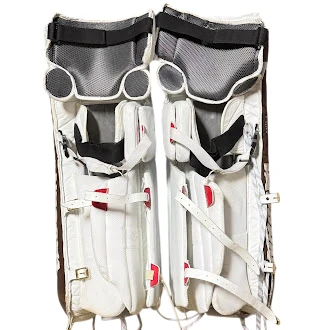 Vaughn Velocity V7 – Used Pro Stock Goalie Pads (White/Brown/Red)